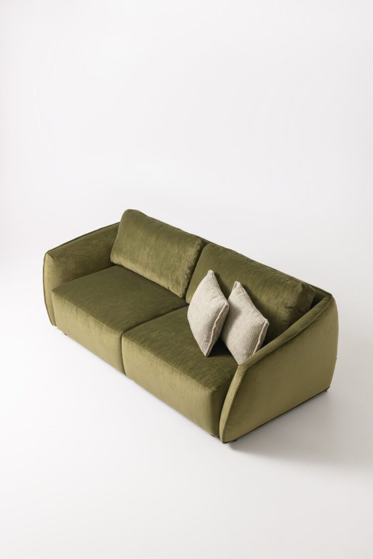 The beautiful geometry of the lines creates a slightly convex rounded shape. Therefore, there is a trace of a balloon, or a spherical shape. In this case the form became the main character, like objects in Picasso’s paintings. The form has a slight playfulness, a challenge, an idea. We tried to make it as practical as possible, so we used Puma mechanism for this model. This mechanism makes MOON sofa a comfortable sleeping area.